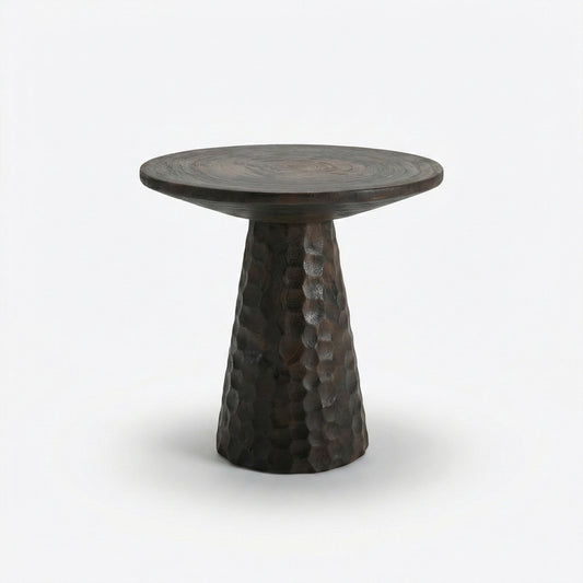 Wooden Carved Side Table 'Jejak' - Brown and Multicolor