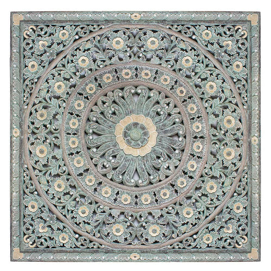 Balinese Carved mandala full bed headboard Dianna | Hand Carved Decor | Balinese Decorative Wall Art | Carved Bed Headboard - Green - USA