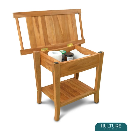 Teak Shower Bench [with Extra Waterproof Storage] 24 inch - US