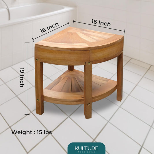 Teak Shower Corner Bench [with Extra Waterproof Storage] 16 inch - US