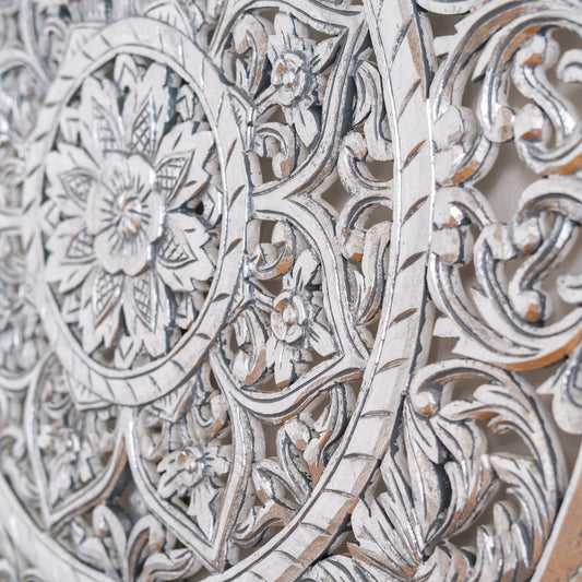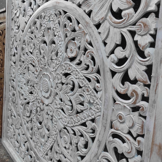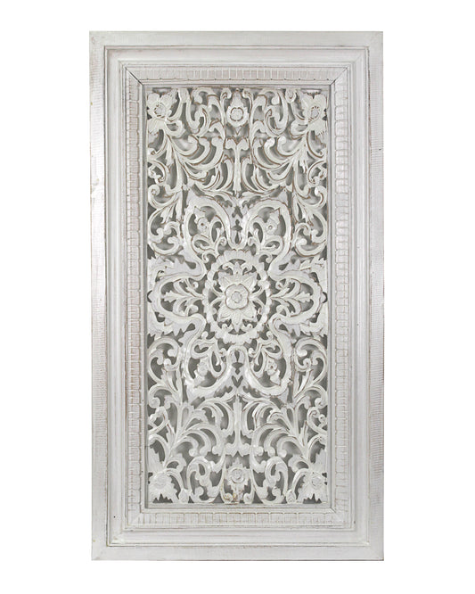 Carved Decorative Panel "Candidasa" in White - 120 cm