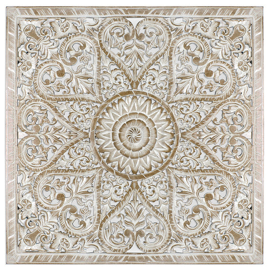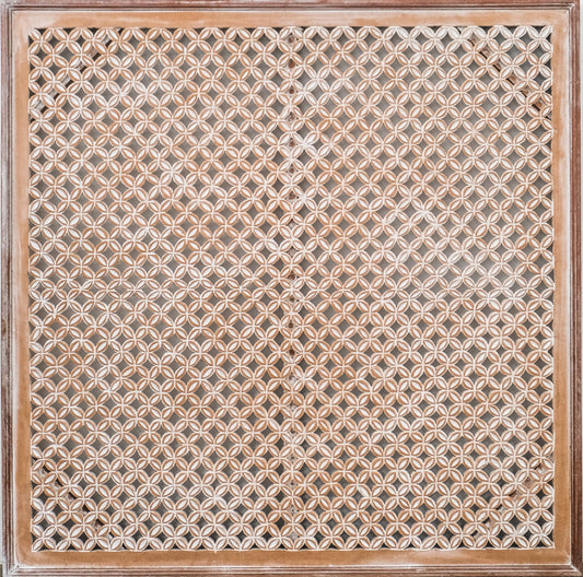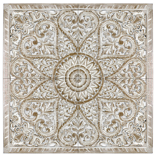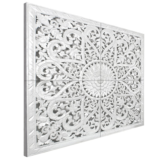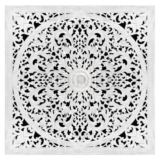Carved Full Bed Headboard "Jantung" - White Wash - USA