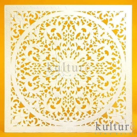 Carved Full Bed Headboard "Kemangi" - White - USA