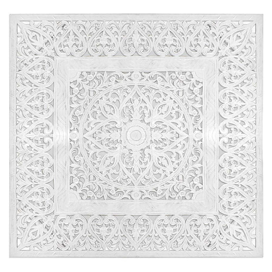 Carved Full Bed Headboard "Raflessia" - White - USA