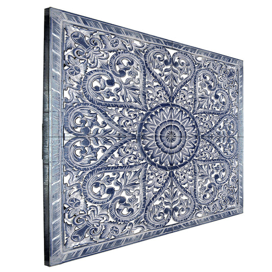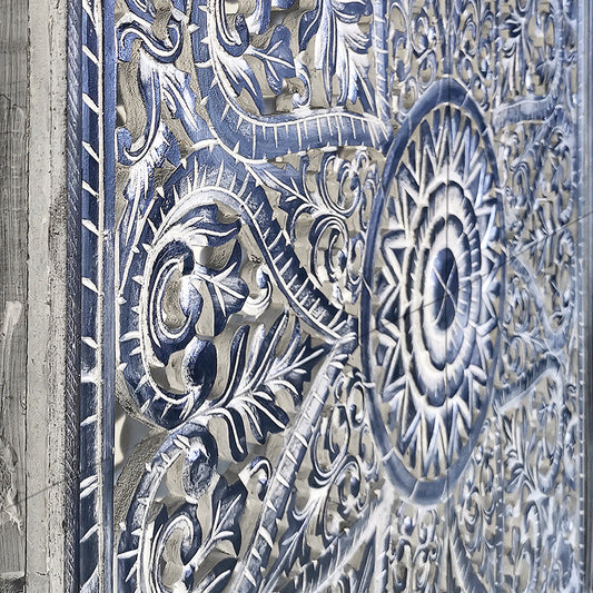 Carved Full Bed Headboard "Jantung" - Navy Blue Wash