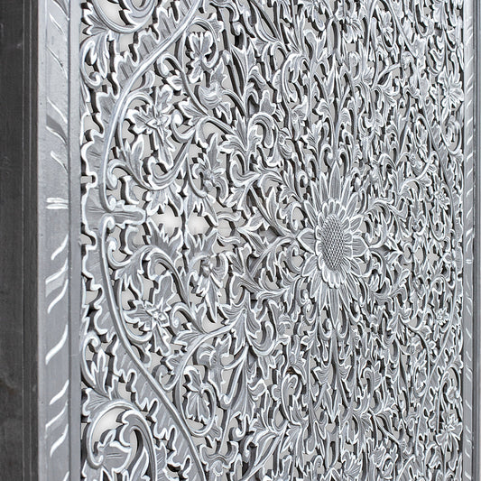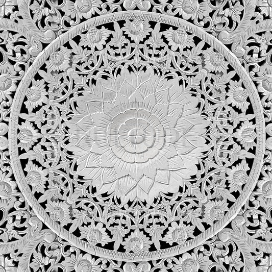 Carved Full Bed Headboard "Peony" - Monochrome