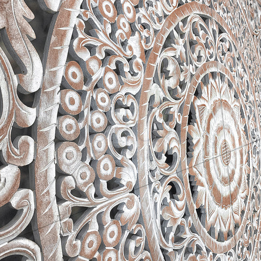 Carved Bed Headboard "Berawa" - Antic Wash