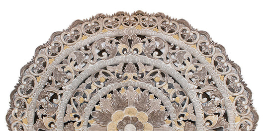 Hand Carved Half-moon Mandala Bed Headboard - 'Serupa' in Gold Antique
