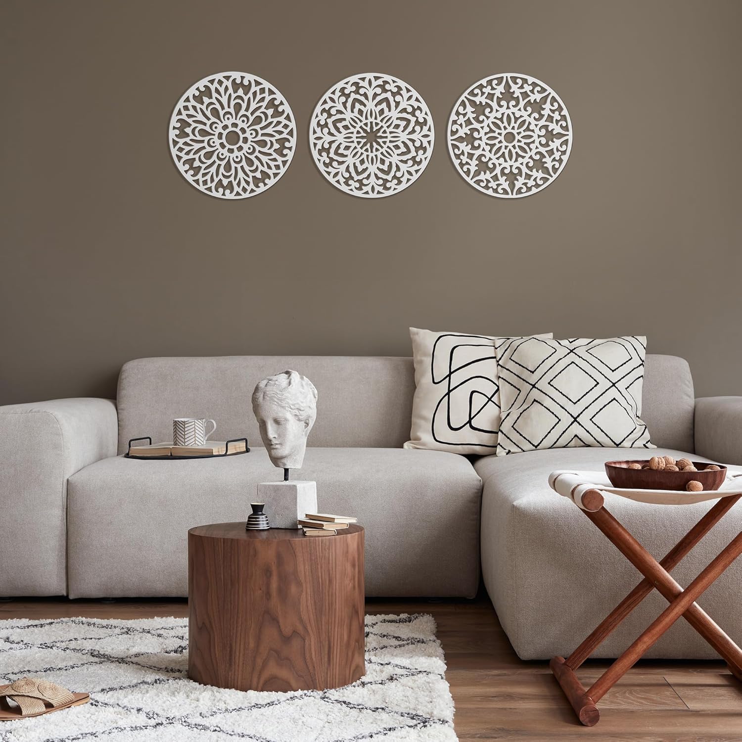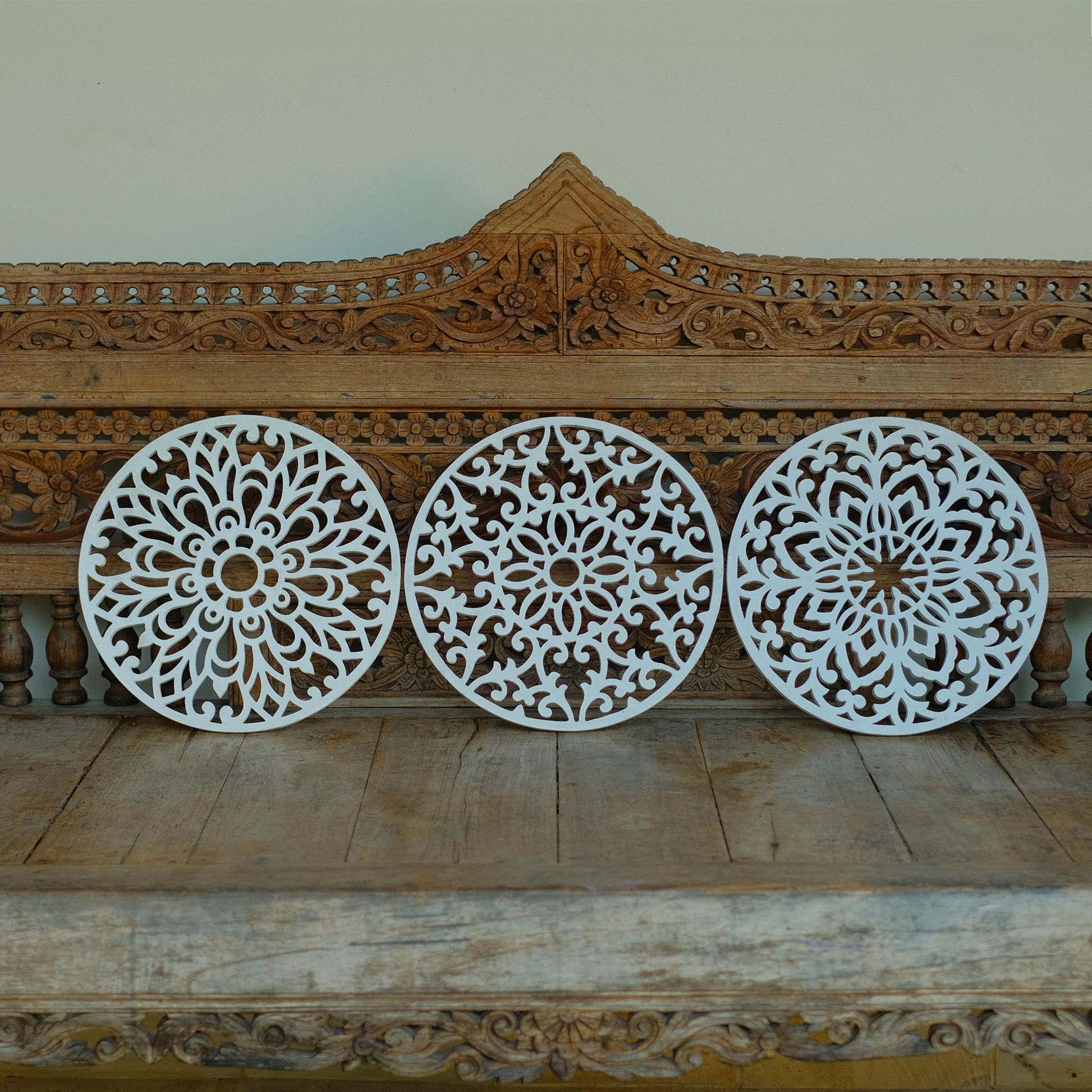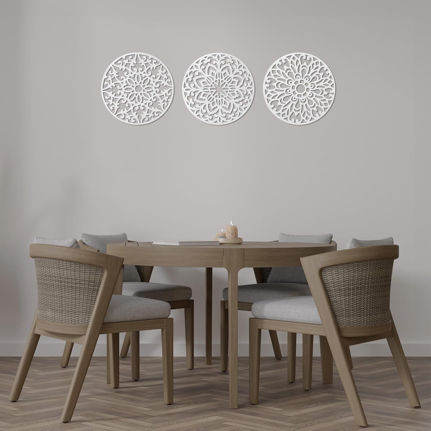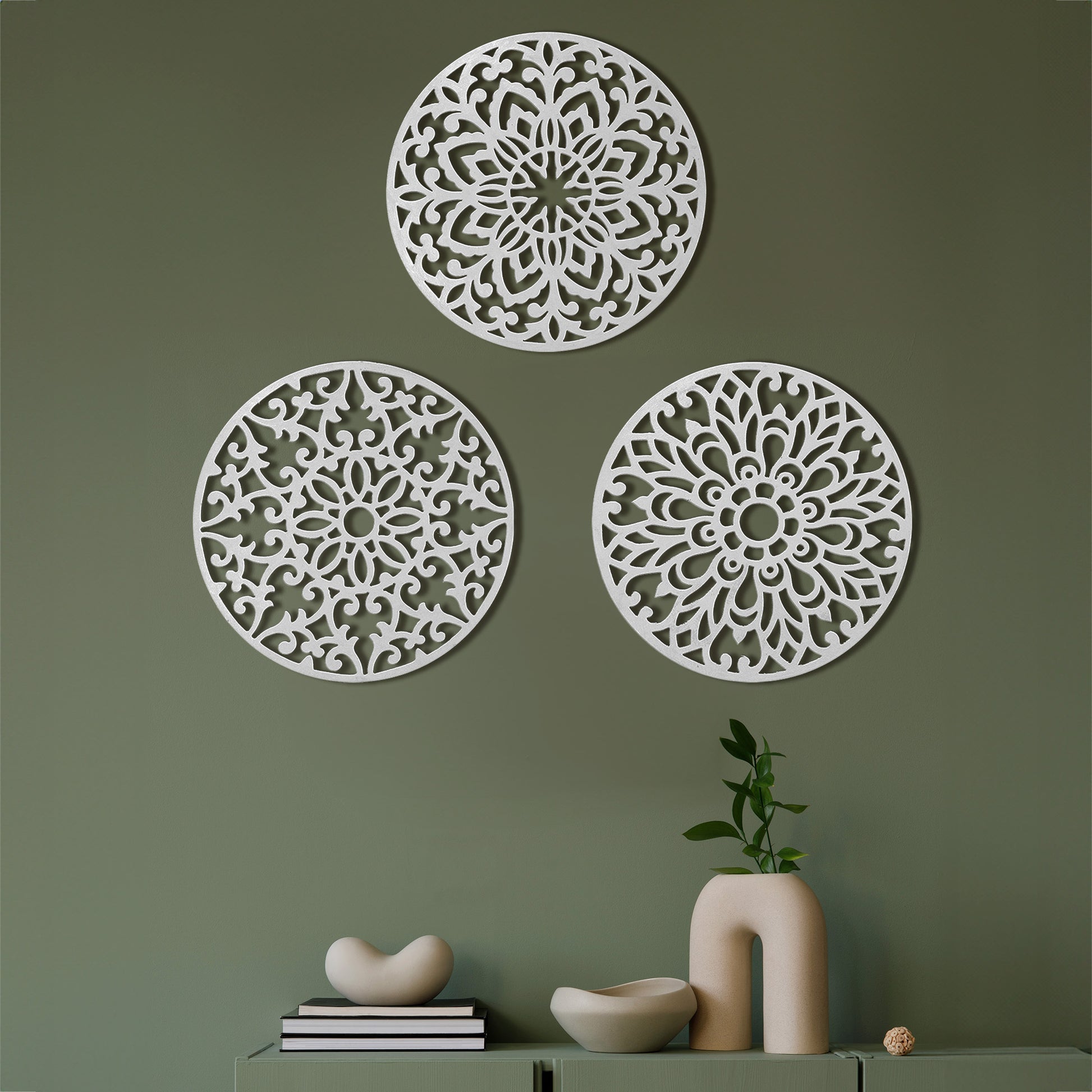 Decorative Round "Mandala Set of 3" - White