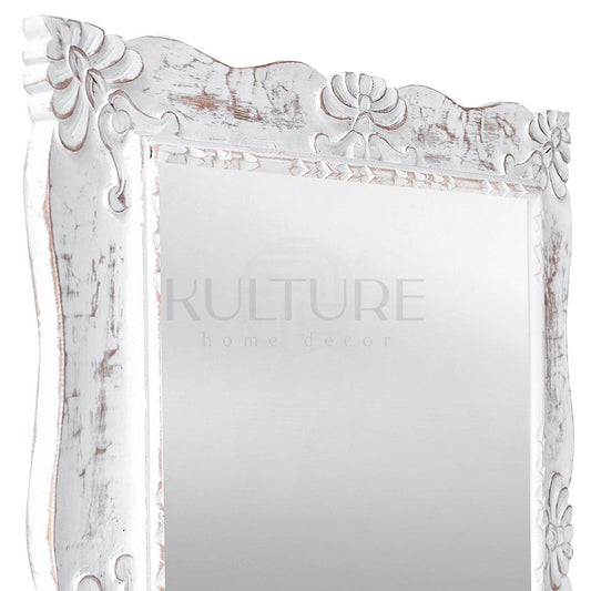 Hand Carved Mirror "Pertiwi" - White Wash - 90 cm