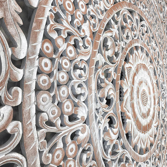Carved Decorative Panel "Astungkara" - White Wash - 120 cm