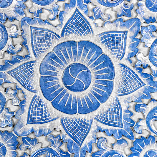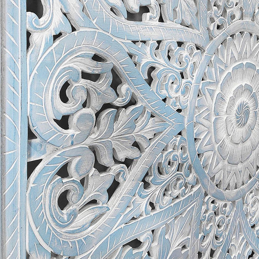 Carved Decorative Panel "Jantung" - Blue Wash - 100 cm
