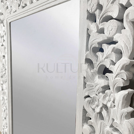Hand Carved Mirror "Medewi" - White - 90 cm