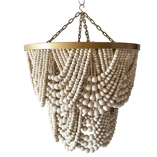 Wooden beads chandelier 'Menari' - Natural