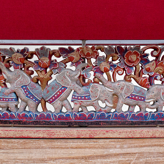 Carved Table Lamp '6 Elephants' - Red
