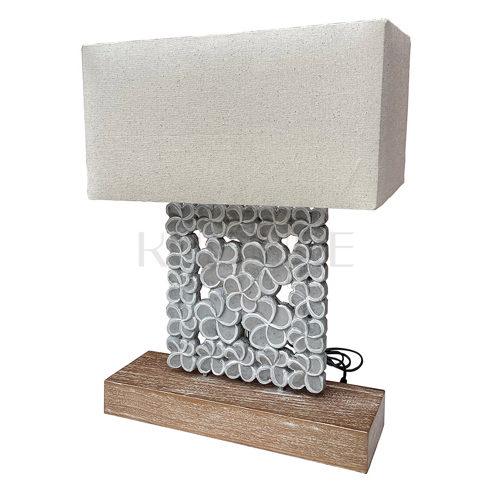 Handmade by a local craftsman in the center of Bali, this table lamp is made of compressed wood with solid wood base. It can be used as a bedroom lamp or to decorate a console table.