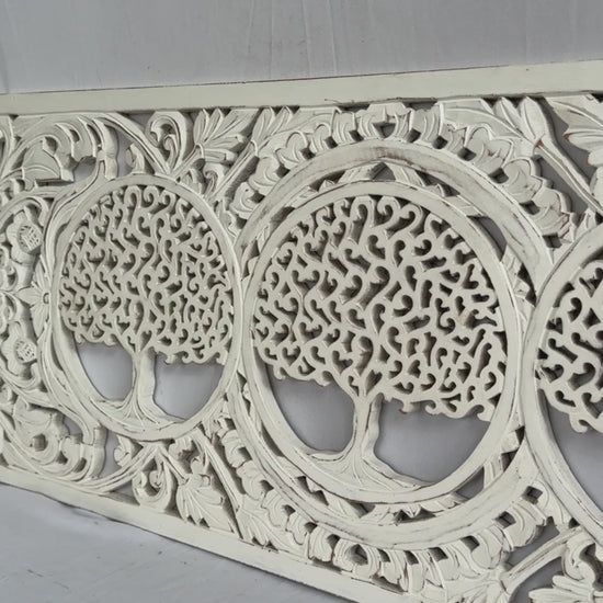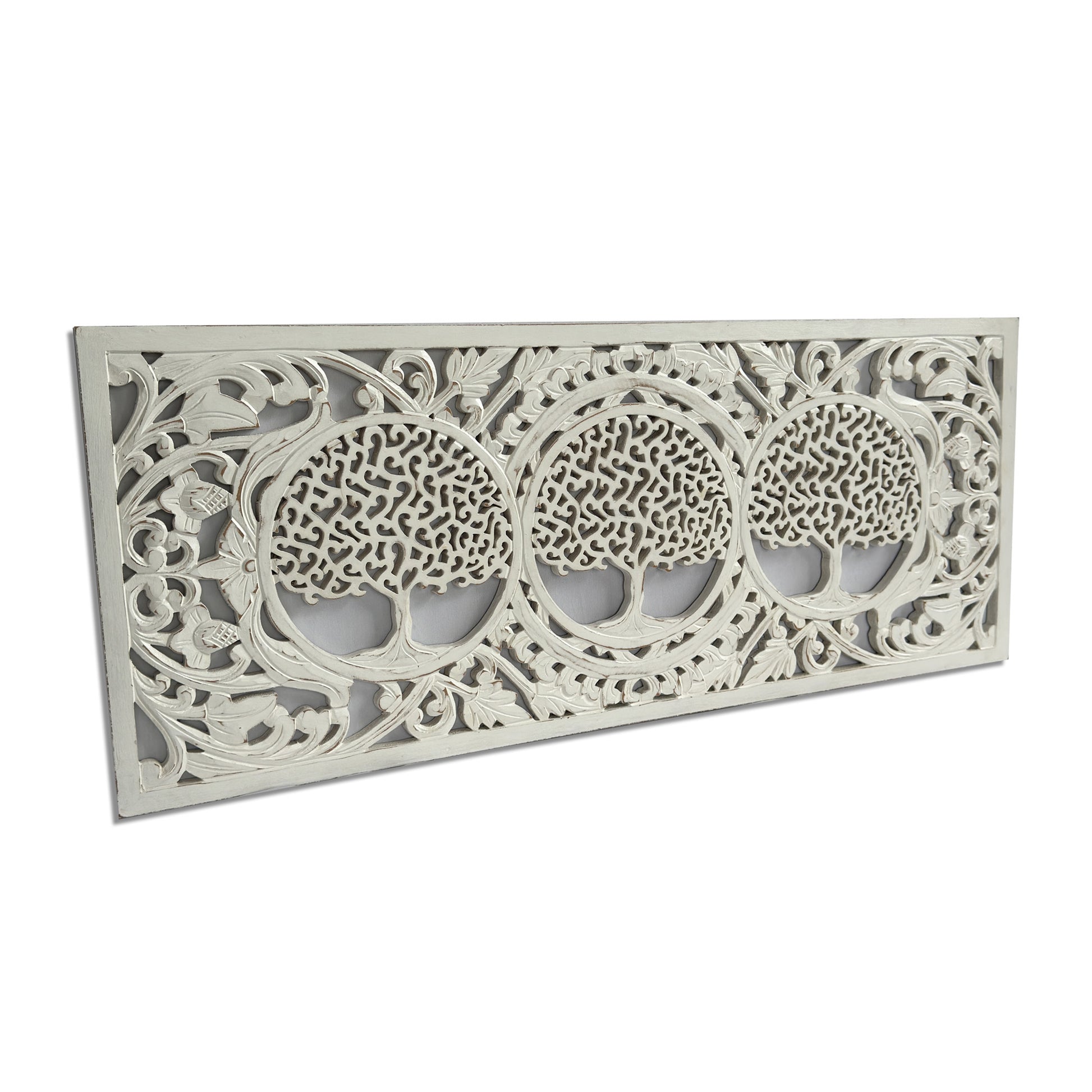 Decorative Panel "3 Tree of Life" - White wash - 100 x 40 cm