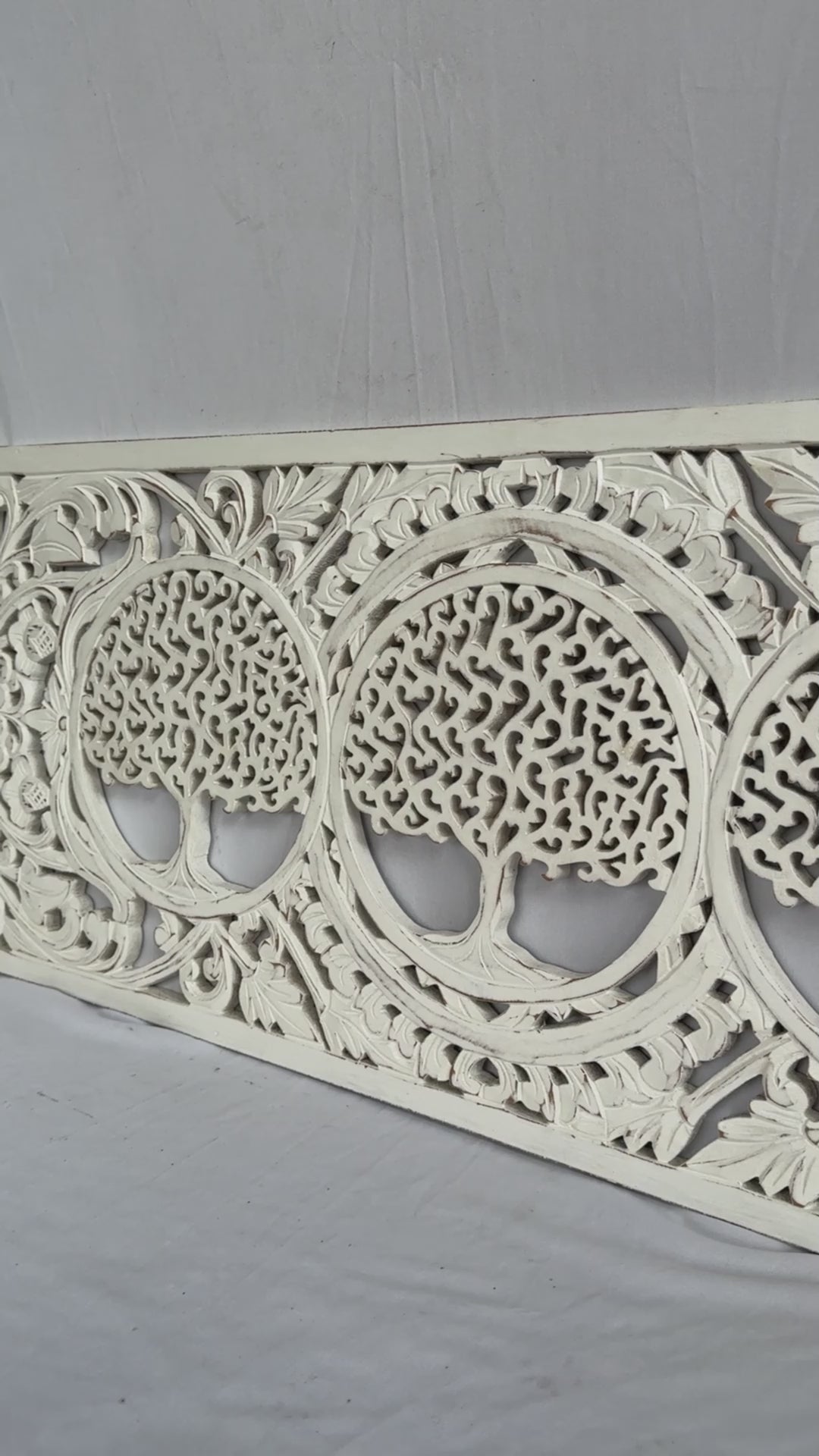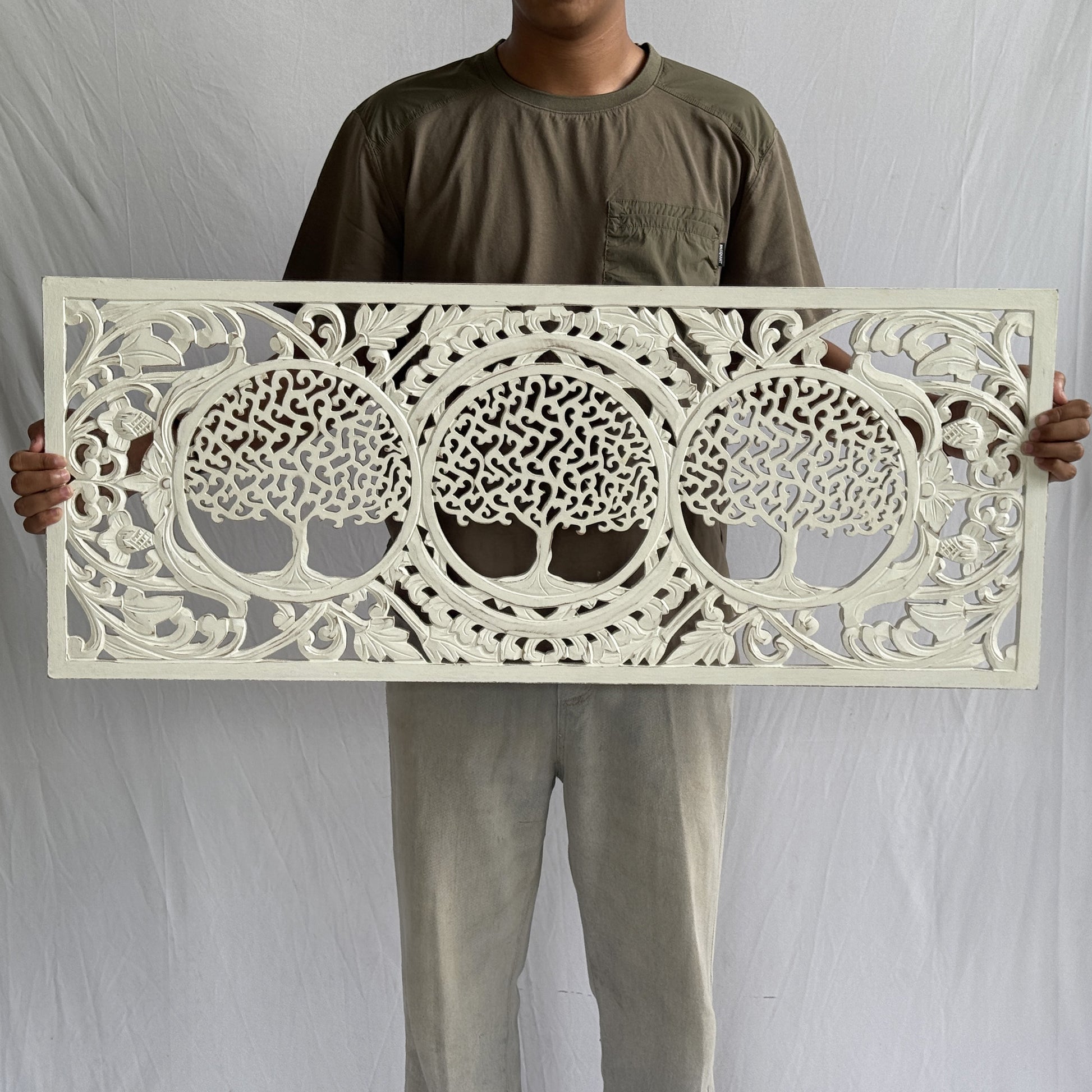 Bring a touch of elegance and natural beauty to your space with this horizontal wall art featuring three Trees of Life in a row. Crafted with care, it measures 100 cm in width and 40 cm in height, making it a perfect centerpiece for your living room, bedroom, or office. Finished in a white wash color, this piece adds a soft, serene aesthetic that complements a variety of interior styles.